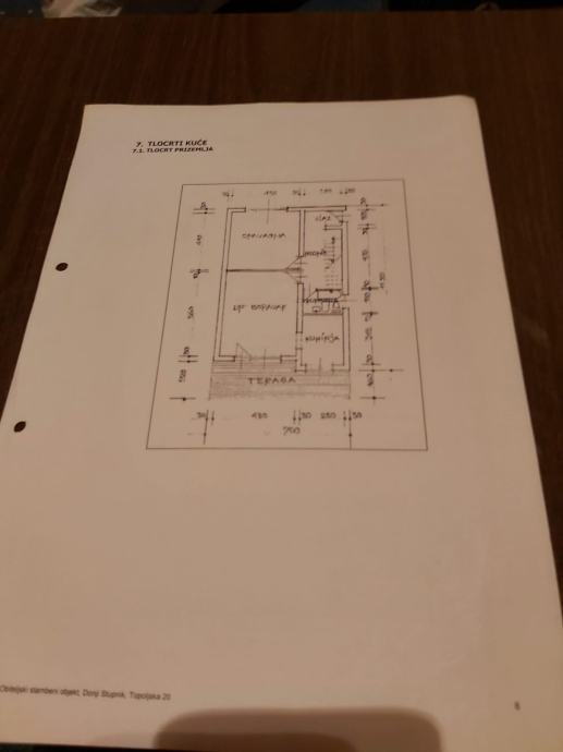 PRIZEMLJE: veliki dnevni boravak/blagovaona s izlaskom na terasu, kuhinja, jedna spavaća soba, kupaonica, hodnik i stubište za kat.