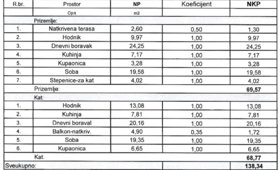 Ukupna površina kuće: 138,34 m2 netto korisne površine: