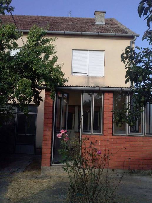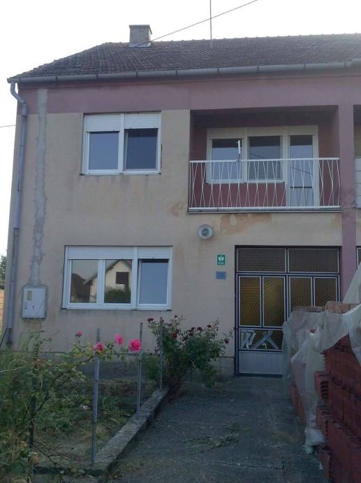 Prodaje se lijevi dio dvojne kuće površine 275.27m2 na parceli površine 2424m2, u Dopsinu u mirnoj stambenoj ulici J. J. Strossmayera 79. Kuće su odvojene zidom, a placevi ogradom. Sagrađena je 1976. godine te se sastoji od prizemlja i kata. Prizemlje kuće čine haustor, dnevni boravak, kuhinja, wc, ostava i hodnik. Kat kuće se sastoji od 4 spavaće sobe, kupaonice, hodnika i lođe. Također ima i tavanski prostor. Grijanje je na peć na kruta goriva. Iza uz kuću se nalazi zatvorena ostakljena terasa, a u prostranom dvorištu kuće nalazi se pomoćna zgrada, zelena površina, mali voćnjak te velika poljoprivredna oranica. Uz kuću također prodajemo cjelokupni građevinski materijal za krovište. Pored kuće s lijeve strane je dvorište. Moguća zamjena za stan u Osijeku. Kontakt: 095/577-8400