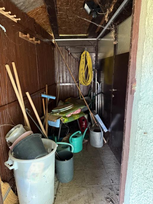 Na parceli se nalazi i pomoćna građevina površine oko 68 m² koja uključuje garažu te dodatni prostor za spremište ili radionicu. Uz garažu je omogućeno i parkiranje na dvorištu. Okućnica je prostrana i nudi brojne mogućnosti za uređenje vrta, voćnjaka, prostora za odmor ili druge sadržaje na otvorenom. Nekretnina se nalazi na mirnoj lokaciji okruženoj prirodom i zelenilom.