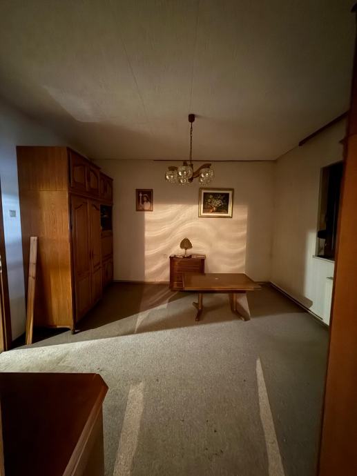 Kuća se sastoji od prizemlja i potkrovlja. U prizemlju se nalazi stambeni dio s kuhinjom i blagovaonicom, dnevnim boravkom, spavaćom sobom te kupaonicom. Prostor je funkcionalno raspoređen i pruža ugodan osjećaj doma. U potkrovlju se nalazi tavanski prostor koji trenutno služi kao spremište, ali nudi potencijal za dodatno uređenje prema željama budućih vlasnika. Kuća je građena od opeke, a krov i fasada obnovljeni su oko 2016. godine. Grijanje je centralno putem kotlovnice na lož ulje.