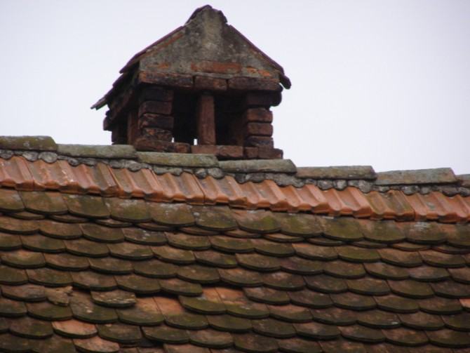 Krovište je dvostrešno, pokriveno biber crijepom koji je u adaptaciji u 20 stoljecu zamijenio pokrov od ražene slame. Duž začelja istaknut je potkrovek, također pokriven bibercrijepom.
