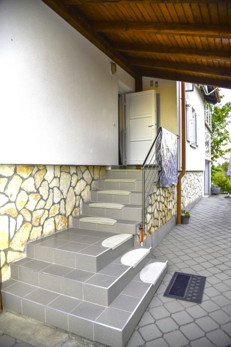 Natkriveno parkiralište na ulazu, natkriven ulaz u kuću.