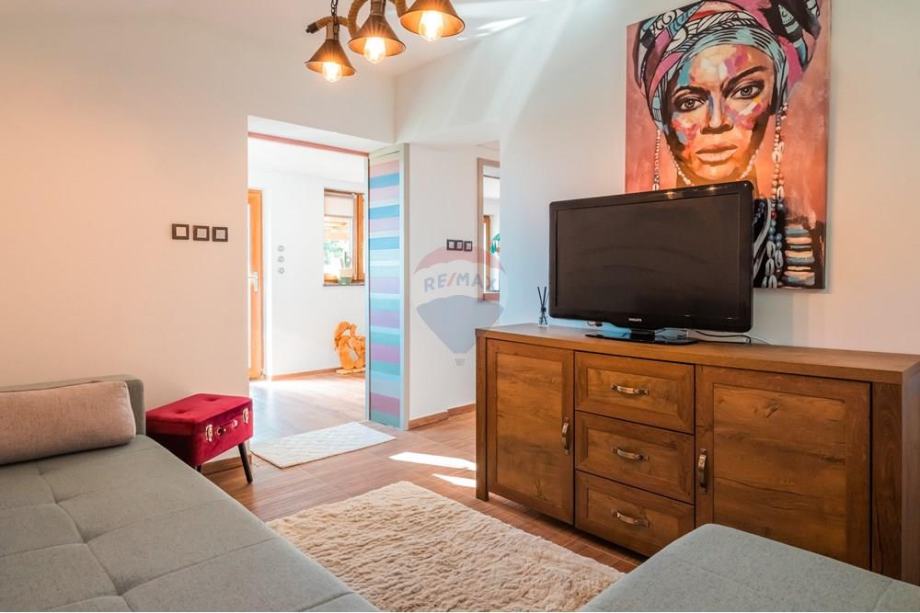 Ova nekretnina uključujue 3 prostorije od kojih su 2 spavaće sobe i 1 kupaonica. Domaća kuhinja i prostrani dnevni boravak pružaju savršeno mjesto za druženje uz kamin, dok grijanje na kruta goriva osigurava toplinu i udobnost tijekom hladnijih mjeseci.