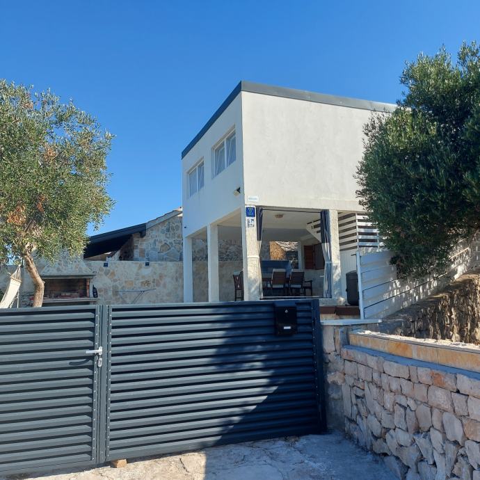 Samostojeća kuća novije gradnje u Drveniku Malom, ukupne površine 114m2, na dvije etaže, prizemlje i kat, na parceli od 207 m2. U prizemlju kuće nalazi se kuhinja sa dnevnim boravakom,kupatilo sa wc i ogromno pokrivenom terasom . Na katu kuće nalaze se hodnik i tri spavače sobe sa kupatilom sa wc i sa terasom. Udaljena od mora 400 m. Kuća se nalazi u mirnom okruženju, s pogledom na more iz terase, idealna za odmor, kao i za turistički najam.