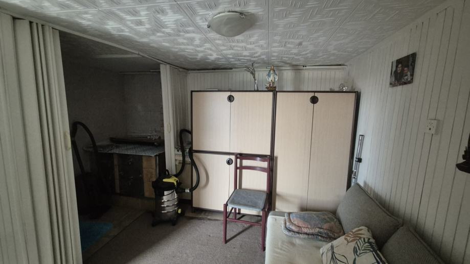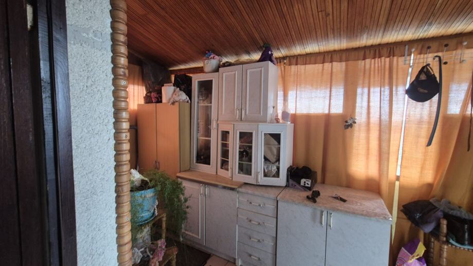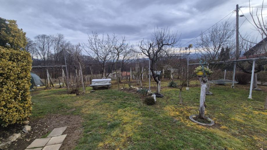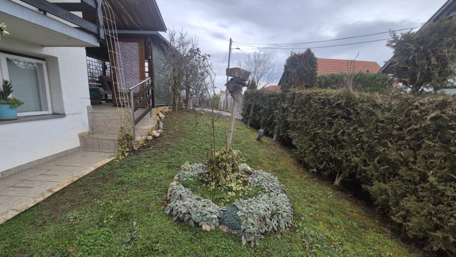 Ograđena parcela sa održavanom kućom iz 1968. g., kuća se sastoji od ukopanog suterena (kuhinja, kupaona sa wc, soba) koji ima pristup prizemlju unutarnjim stepenicama, u prizemlju se nalaze veranda, hodnik, ostava, kupaona sa wc, kuhinja, odvojeni dnevni boravak, 3 spavaće sobe, balkon, vanjskim stepenicama ulazi se u visoko potkrovlje koje je nedovršeno.
