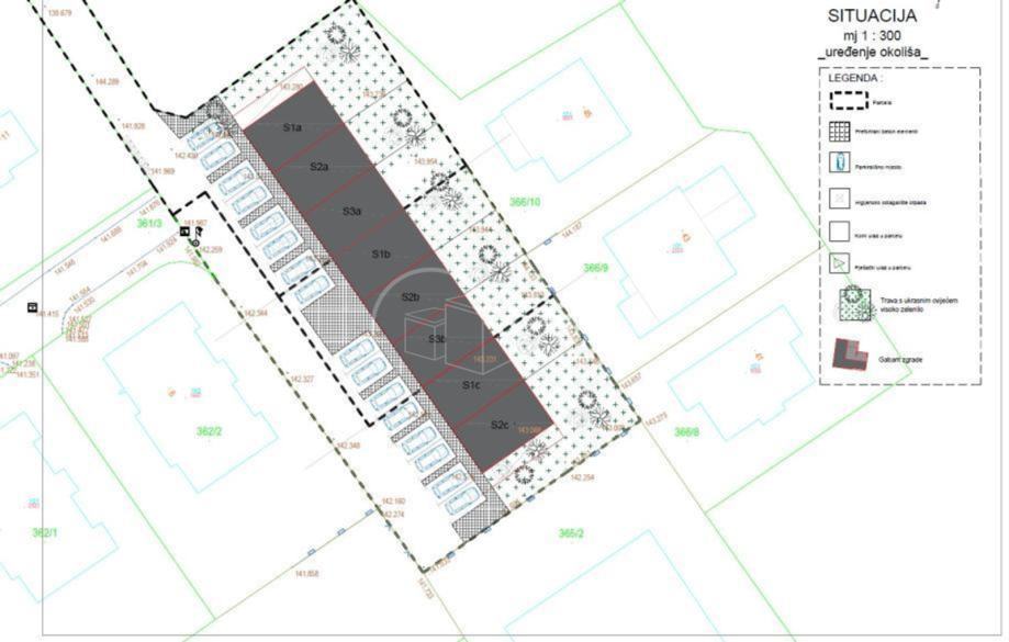 Vanjska parkirna mjesta formiraju se uz južnu među kuća.