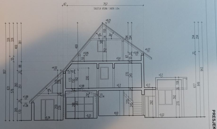 Kuća ima dvije uređene etaže (109.79 i 62.85 m2). Prizemlje se sastoji od kuhinje, kupaone, dnevni boravak sa blagavaonom i garaža. Prvi kat ima 3 spavaće sobe i 1 radna soba. Tavanu se pristupa preklopnim stepenicama, nije uređen za život te sadrži mrežom ograđeni prostor za sušenje suhomesnatih proizvoda.