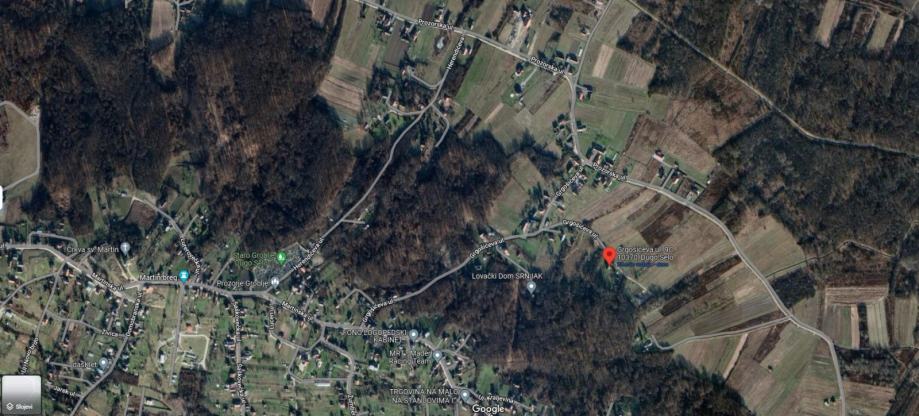 Zemljište na kojem se nalazi uređena kuća, pomoćni objekt, voćnjak, vrt i travnjak ima ukupno 3477 m2. Nalazi se u Grgošićevoj ulicu u Dugom Selu (na padini Martin brega u smjeru sela Prozorje). Okoliš je miran, rijetko naseljen, udaljeno od glavne ceste i bilo kakve buke, a automobilom od centra Dugog Sela potrebno je 5 minuta vožnje.
