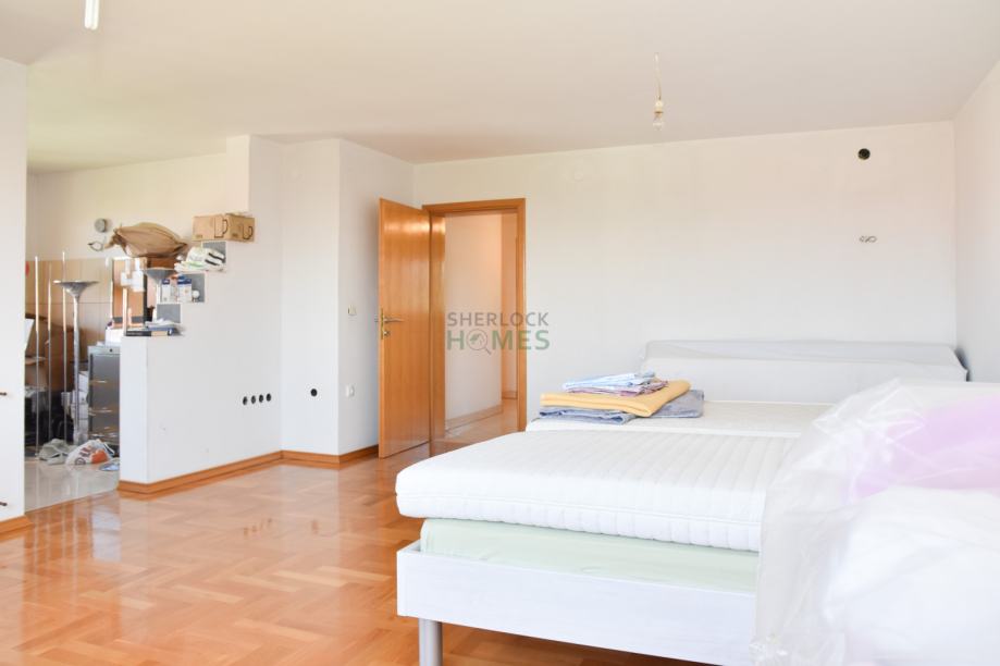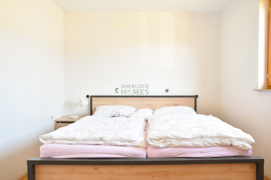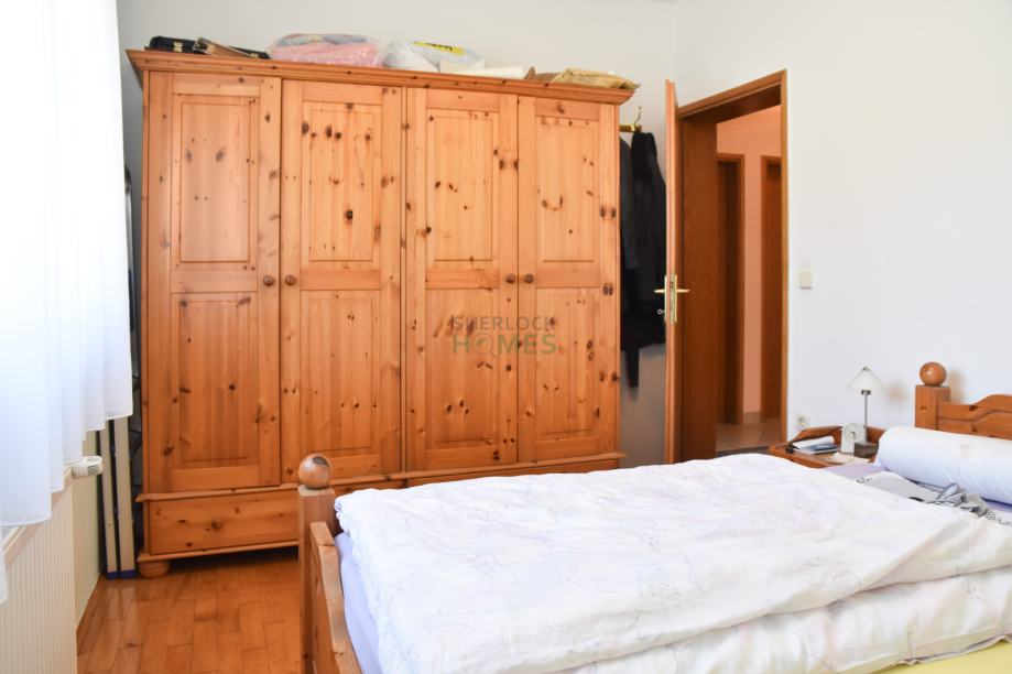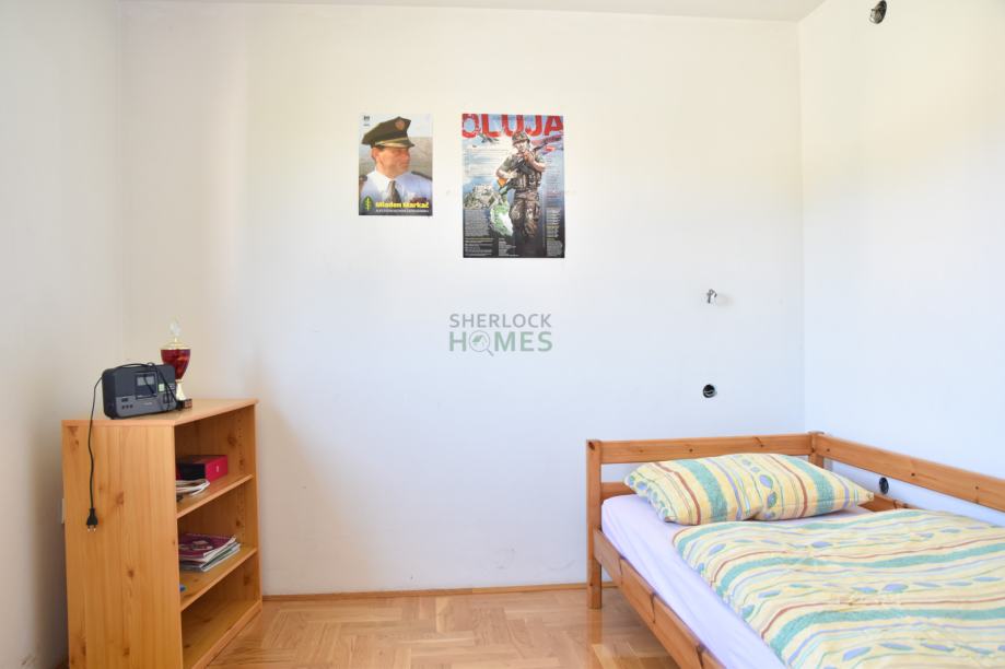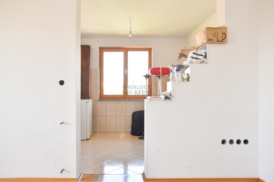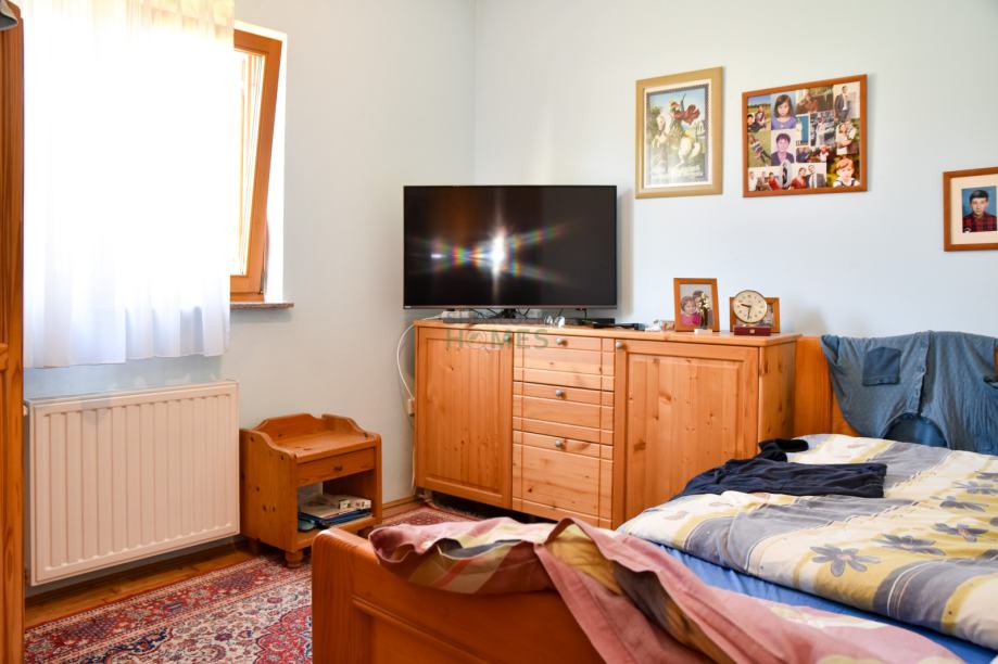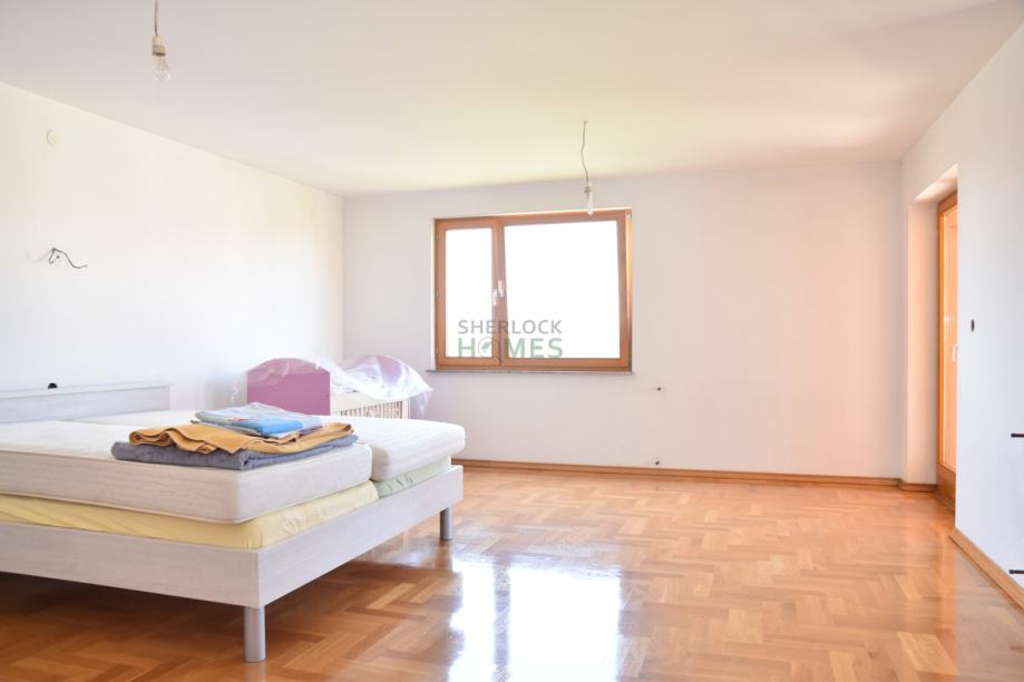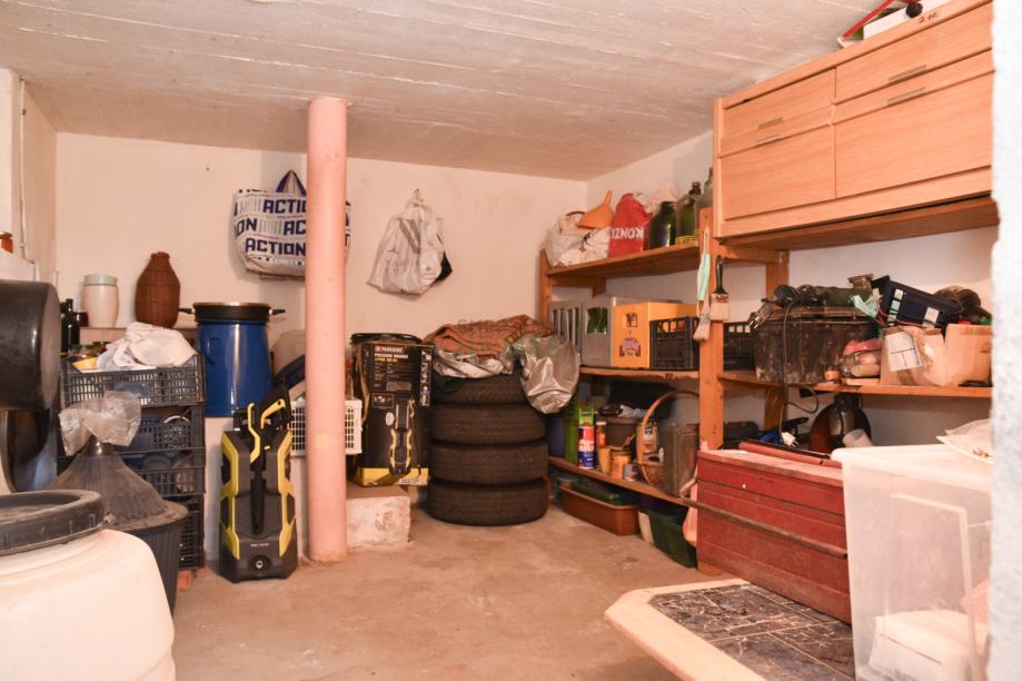Sastoji se od manjeg podruma, prizemnog, povišenog dijela, kata i neuređenog tavanskog prostora. U prizemnom dijelu su 3 spavaće sobe, kupaonica sa wc-om, odvojeni wc, nusprostorija sa bojlerom/spremište, te spojeni dnevni boravak sa blagovaonom i kuhinjom sa Izlazom na loggiu i vrt. Na katu je isti raspored prostorija, vidljivo u tlocrtu. Kat ima veću loggiu od prizemlja.