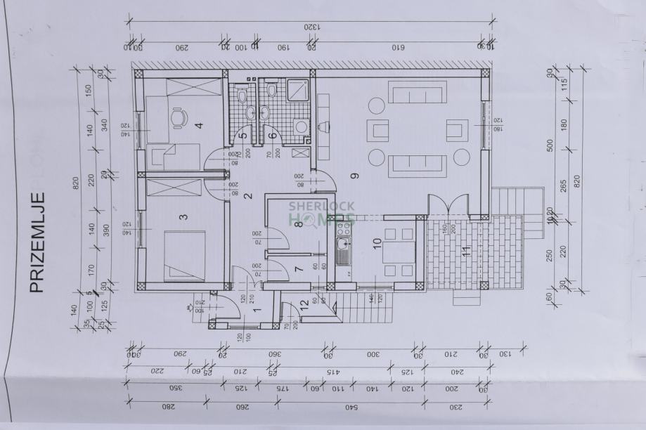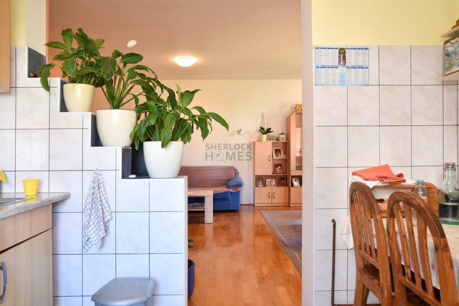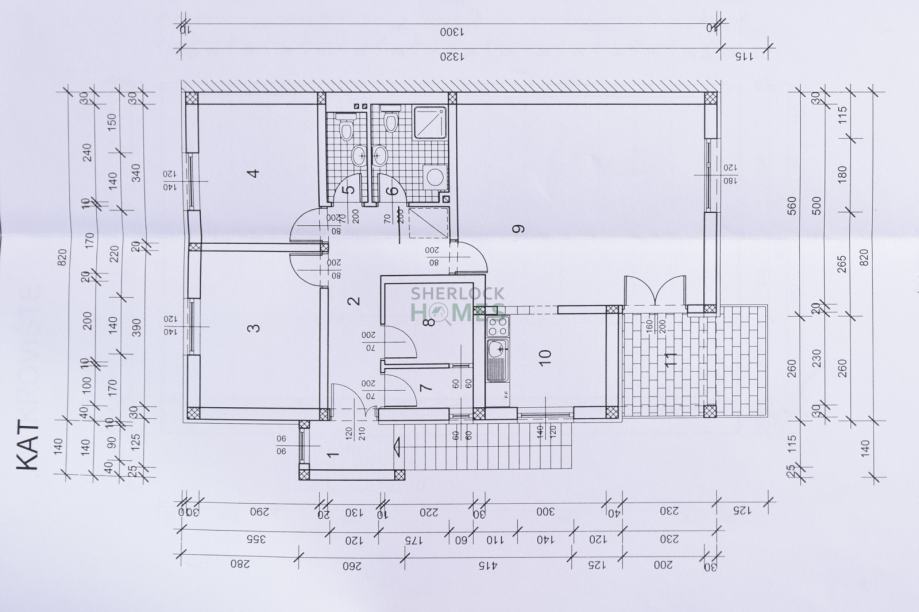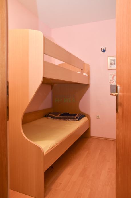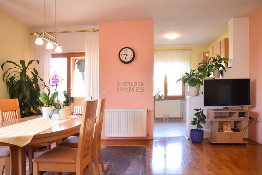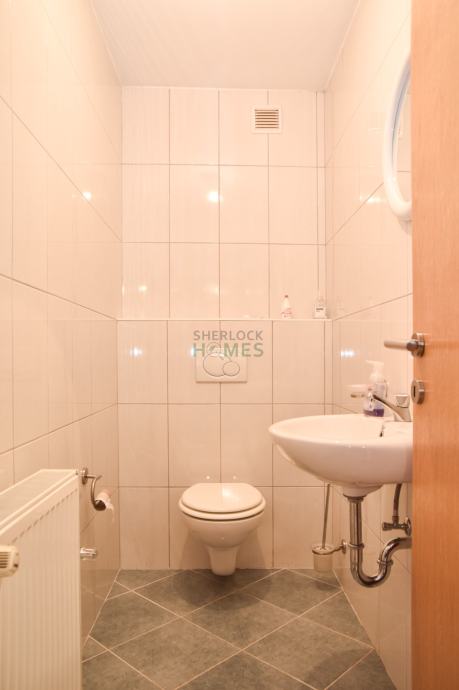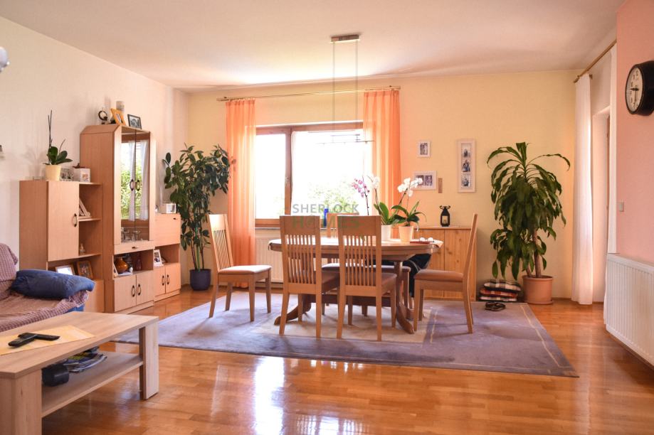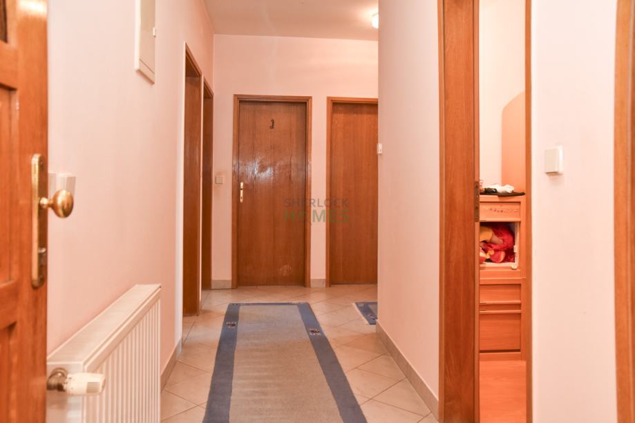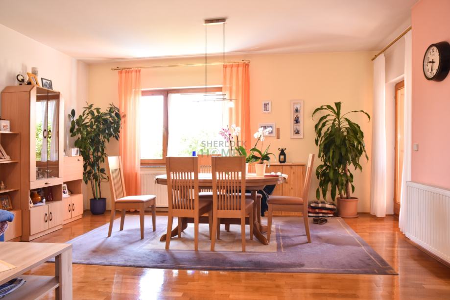 Sastoji se od manjeg podruma, prizemnog, povišenog dijela, kata i neuređenog tavanskog prostora. U prizemnom dijelu su 3 spavaće sobe, kupaonica sa wc-om, odvojeni wc, nusprostorija sa bojlerom/spremište, te spojeni dnevni boravak sa blagovaonom i kuhinjom sa Izlazom na loggiu i vrt. Na katu je isti raspored prostorija, vidljivo u tlocrtu. Kat ima veću loggiu od prizemlja.