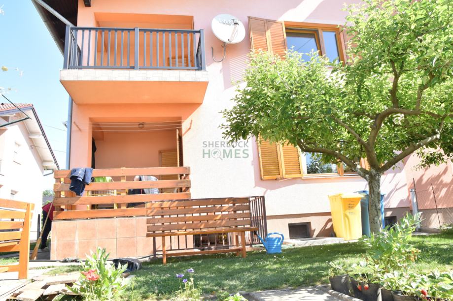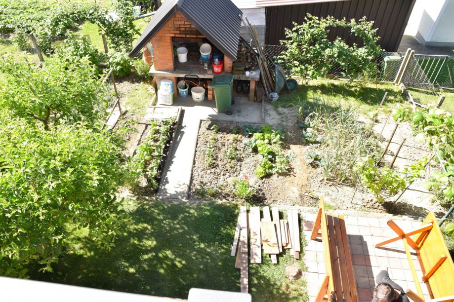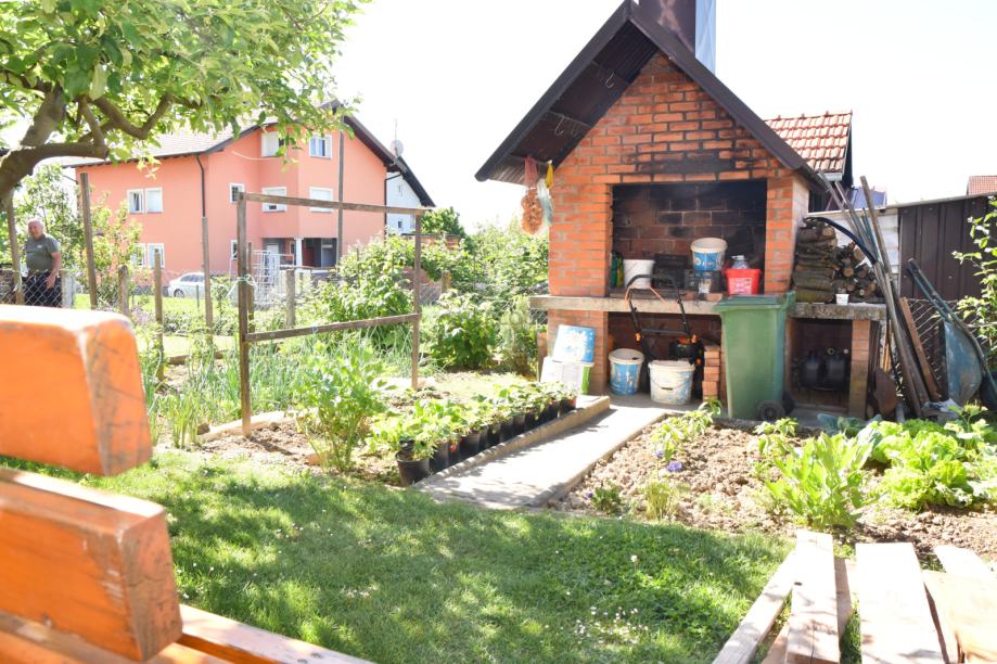 U prednjem dijelu dvorišta je parking, a sa stražnje strane vrt, roštilj, ulaz u podrum...