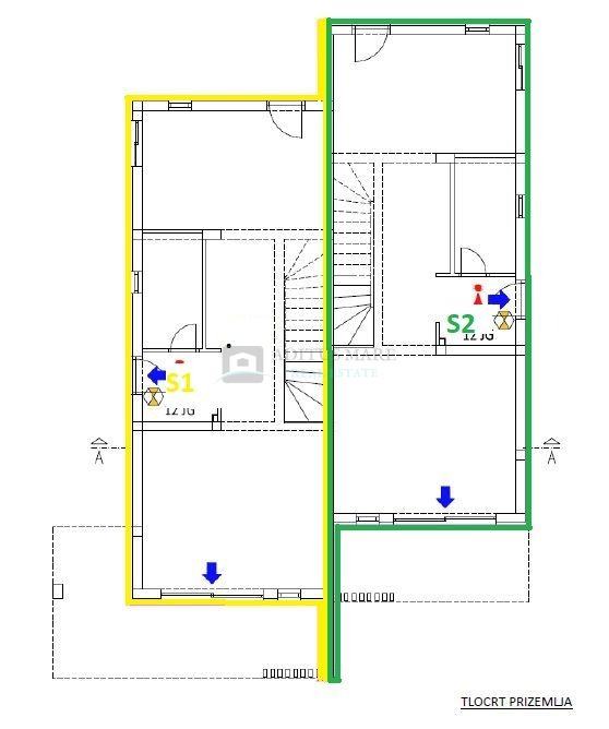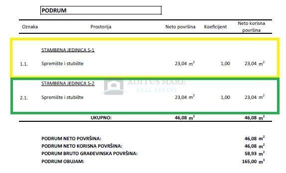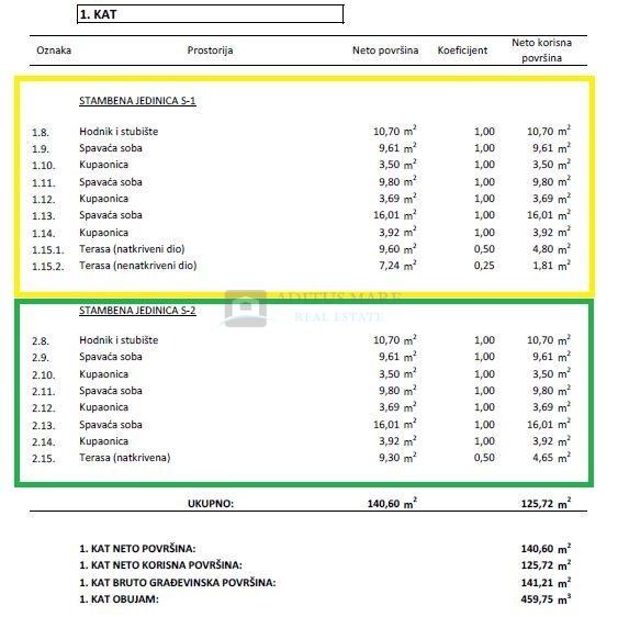 Duplex kuću sačinjavaju dvije stambene jedinice, svaka neto površine cca 220.37 m2 + dva parkirna mjesta + okućnica.