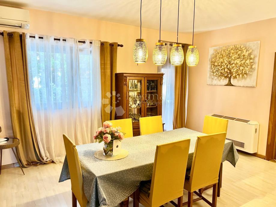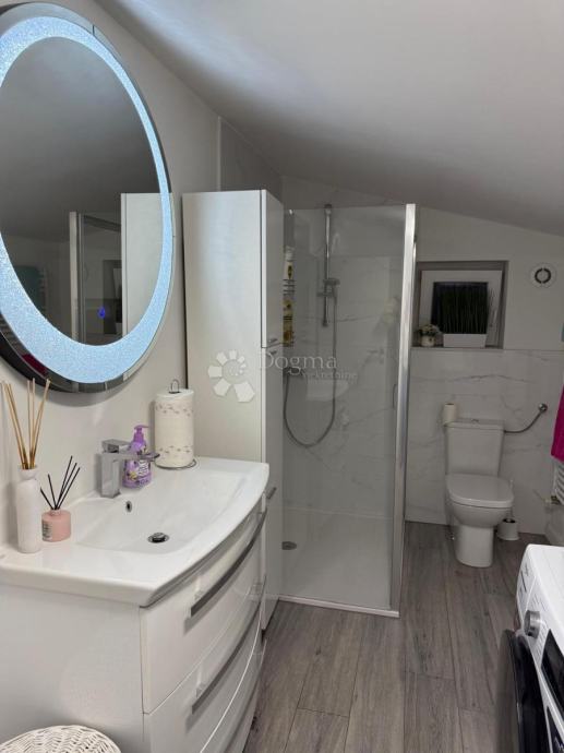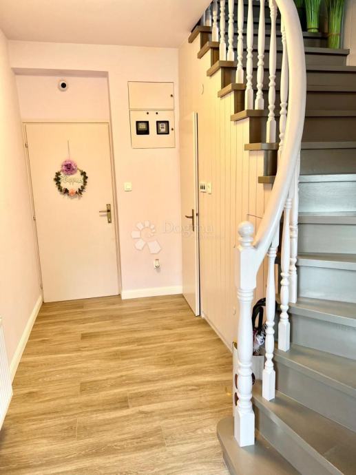 Grijanje je plinsko etažno, a raspored je pod kontrolom – 5 klima za savršen balans. Sigurnosni Klemm sustav s 7 kamera čuva mir i san, kao psi čuvari koji nikada ne spavaju. Terasa na katu je mali raj – potpuno izolirana, s uređenom kućicom za odlaganje ljetnih rekvizita, ima plinski priključak za roštilj, vodu i struju: to je pozornica za ljeto, smijeh i dobru hranu. Parking je riješen kao šahmat – mjesta čak pet, svatko ima svoje.