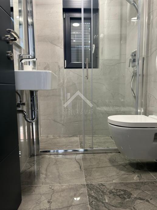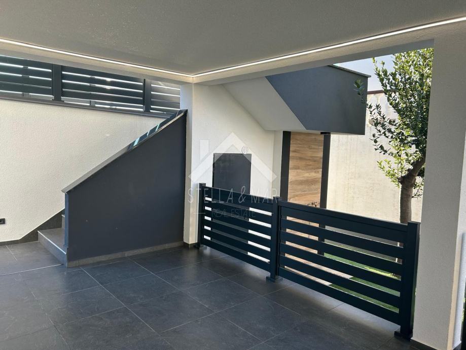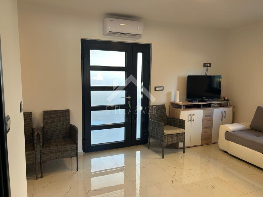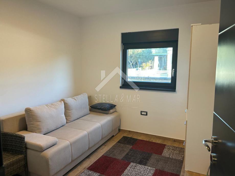 U prizemlju se nalazi apartman sa dnevnim boravkom, kuhinjom, blagovaonom, dvije spavaće sobe i kupaonom. Lijepo uređeno dvorište sa roštiljem.