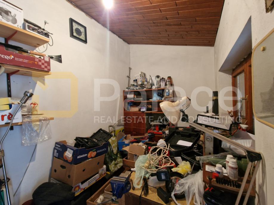 Kuća se sastoji od hodnika, 2 dnevna boravka/trpezarije, kuhinje, 2 sobe, ostave, kupatila s wc-om i podruma.U sklopu kuće nalazi se prostorija s ugrađenom hladnjačom i ostavom, koja može koristiti u svrhe proizvodnje, prerade ili skladištenja. S obzirom da ima dodatni izlaz na glavnu ulicu, može se preurediti u poslovni prostor.U dvorišnom dijelu je prostrana prostorija s pušnicom, koja služi kao ljetna kuhinja, 2 šupe, 2 prostorije/ostave i bunar. Na ulasku u dvorište nalazi se haustor/natkriveno garažno mjesto za dva vozila.