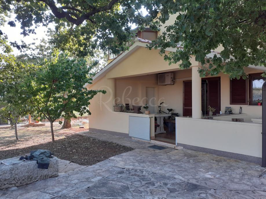 Prodaje se novija kuća ukupne stambene površine 130 m2 raspodjeljene u dva stana. Visoko prizemlje ima 66,1 m2 a sastoji se od tri spavaće sobe, kuhinju, dvije kupaone, terasu natkrivenu i nenatkrivenu sa ljetnom kuhinjom i blagavaonom te dodatnom kupaononom kao vešeraj. Stan u suterenu odnosno prizemlje sa zadnje strane kuće površine 63,4 m2 se sastoji od spavaće sobe, velikog dnevnog boravka sa kuhinjom i blagavaonom, kupaone i predsoblja. Kompletno je uređen i namješten. Na terasi pored ljetne kuhinje je zasebna kupaona. Okućnica je zelena površina sa dva stara hrasta koja u ljetnim mjesecima sa svojim raskošnim krošnjama za vrijeme ljetnih žega osigurava ugodan odmor u hladu. Uz to je zasađeno nekoliko stabala voćki pored kojih je vrtna kućica. Mjesto je na blagoj uzvisini okruženoj prirodom idealnoj lokaciji kako za odmor tako i miran obiteljski život.