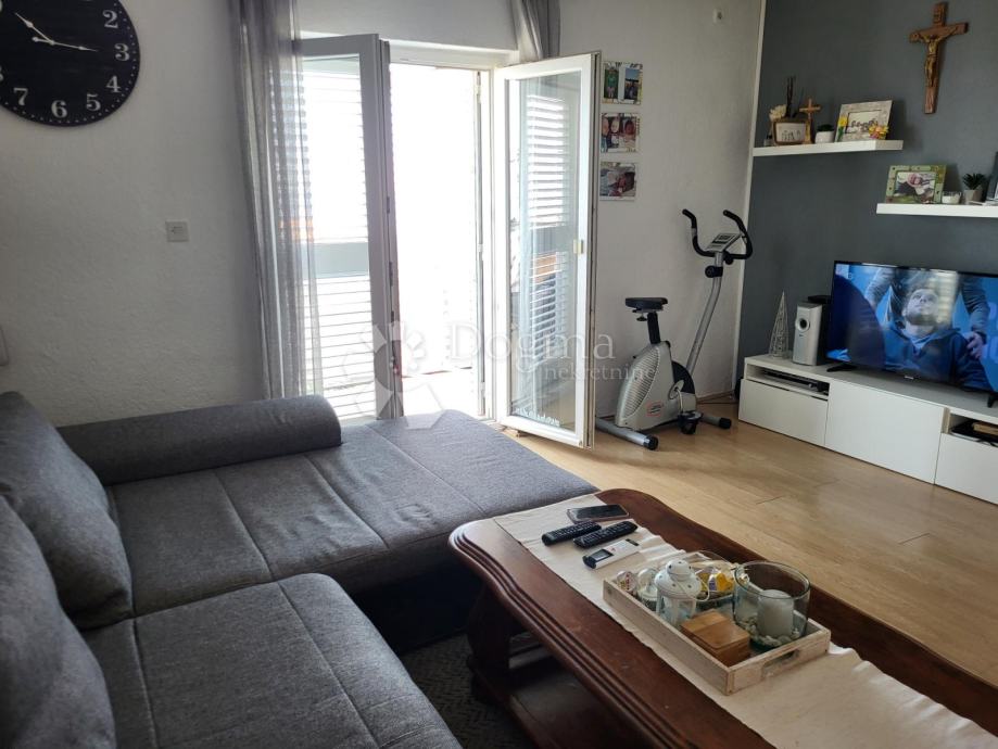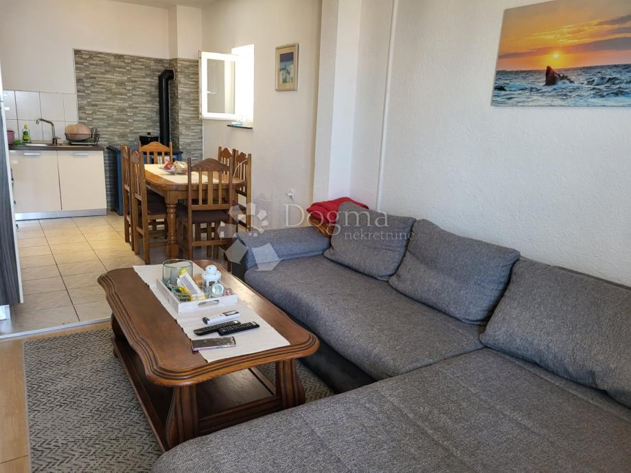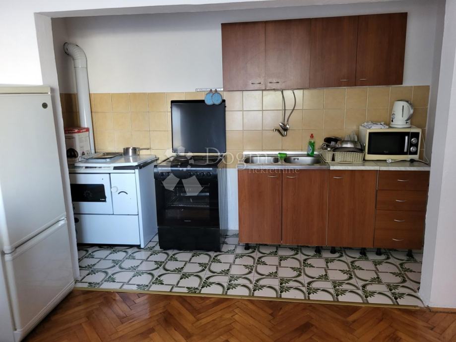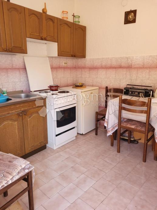 Vanjskim stepeništem se penje na kat, tu se nalazi stan koji se sastoji od dva pred prostora, kuhinje s dnevnim boravkom ,kupaonice i tri sobe. Iz dnevnog dijela izlazi se na balkon koji ima prekrasan pogled na more.