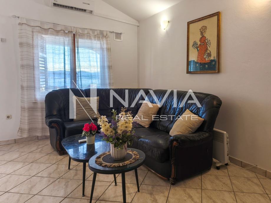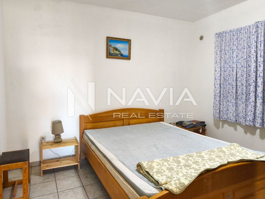 Na prodaju je prostrana kuća smještena u mirnom i ugodnom okruženju, svega 300 metara udaljena od mora, s prekrasnim pogledom na more. Nekretnina se nalazi na parceli površine 650 m², dok ukupna stambena površina kuće iznosi 320 m². Kuća se prostire na prizemlje i kat te je koncipirana kao dvije odvojene stambene jedinice, što je čini idealnom za obiteljski život, ali i kao izvrsnu investiciju za turistički najam.