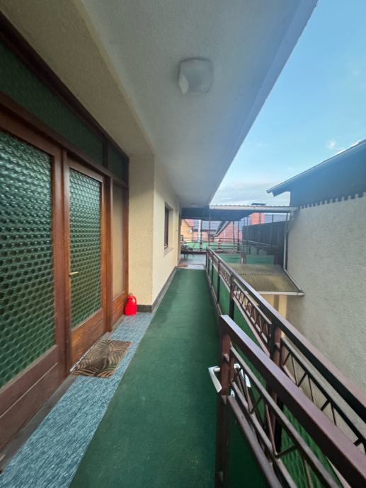 Na prodaju je kuća u centru grada sa dva stana. Svaki stan ima zaseban ulaz prvi se sastoji od tri spavaće sobe, kuhinje, blagovaonice sa dnevnim boravkom, kupaonice i balkona, drugi stan ima dvije spavaće, kuhinju, blagovaonicu i dnevni boravak, kupaonicu, hodnik i balkon. Poslovni prostorom površine 130m2, garaža i skladište. Uz stan na prvom katu nalazi se velika terasa cca 60m2.