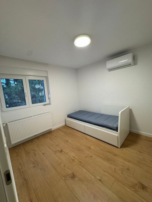 Kuća pozicionirana u Plivskoj ulici u mirnom dijelu Bosutskog naselja veličine 75m2. Sastoji se od 2 etaže: na prizemljui je hodnik, walk in ormar, hodnik, WC, dnevni boravak, kuhinja, vešeraj, stubište, terasa (18m2). Na katu je hodnik, velika spavaca, mala spavaca i kupaona. Dvoriste je 150m2. U potpunosti je adaptirana u modernom dizajnu, s novom namještajem, s klimama u svakoj sobi, perilica/sušilica rublja, TV, alarmnim sustavom, solarnom elektranom, Smart home, 2 parkirna mjesta. Svi kućanski aparati i namještaj su potpuno novi - prvi stanari.