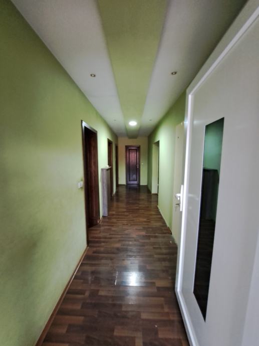 2) Prizemlje: NKP 109,82 m² sastoji se od hodnika, blagovaonice, dnevnog boravka, kuhinje, tri sobe, ostave, kupaonice te natkrivenog parkirnog mjesta i garaže.