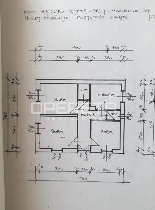 Kuća je starije gradnje i potrebna joj je potpuna renovacija, no upravo to otvara mogućnost stvaranja modernih prostora unutar povijesne strukture.