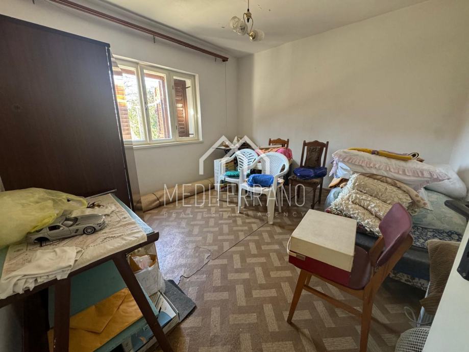 Kuća za renovaciju idealna za obitelj koja traži prostor za vlastiti pečat i adaptaciju. Smještena je na prostranom zemljištu s dvorištem i vrtom, što je idealno za obitelj koja voli boraviti na otvorenom. Sastoji se od dvije spavaće sobe, te jedne dodatne prostrane sobe koja može služiti kao spavaća soba ili spremište.