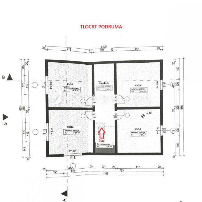 PODRUM: neuređen s kotlovnicom ukupne površine 100 m2.