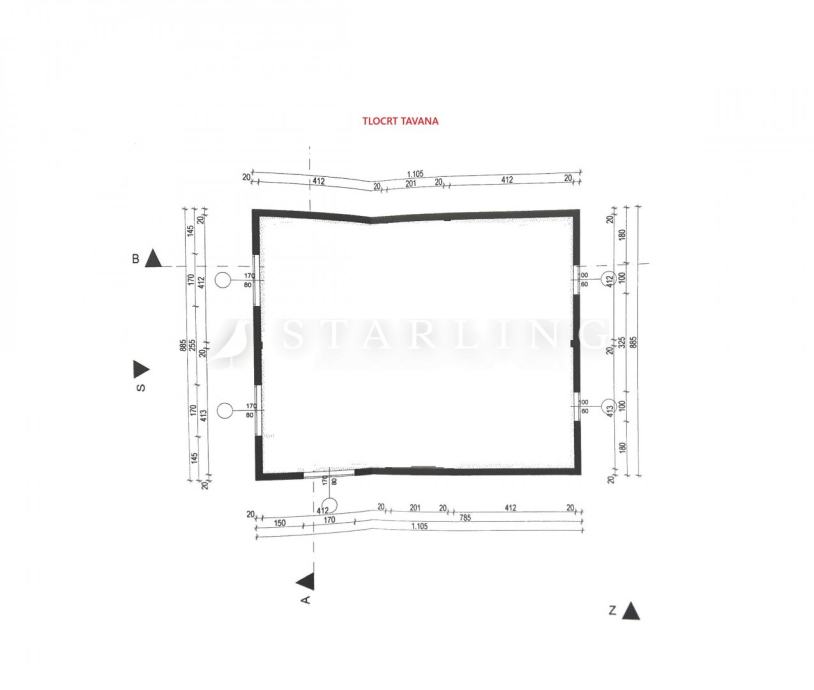 POTKROVLJE: jedna prostorija u roh-bau stanju ukupne površine 100 m2, moguće je izvesti trosoban stan.