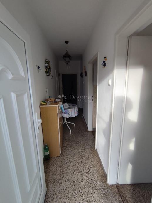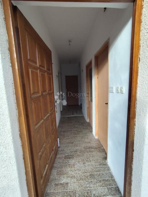 Na prvom katu nalazi se hodnik, kuhinja, kupaonica, WC, jedna prostorija i dvije sobe s izlazom na terasu.