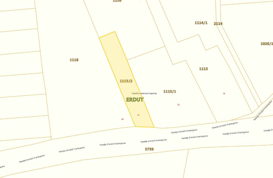 Nekretnina upisana kod Općinskog suda u Osijeku, zk. ul. br 1079, k.č. br.1115/2, k.o. Erdut, što u naravi predstavlja kuća br.2, zgrada, dvorište i oranica Žarkovac, ukupne površine 1442 m2.