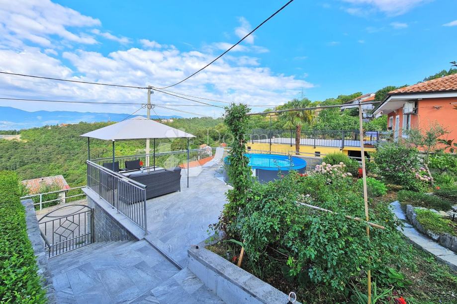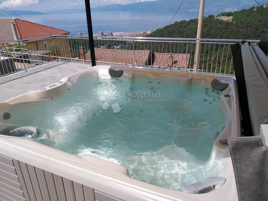Nekretnina ima i 3 garaže, lijepu vrtnu kućicu s ljetnom kuhinjom i roštiljem. Oko kuće je vrt s terasama na više nivoa, a na jednoj od terasa nalazi se bazen, na drugoj Jacuzzi iz kojeg uživate u pogledu na cijeli Kvarner, a tu nam je josš i lounge te zelenilo; okoliš stvoren za uživanje!