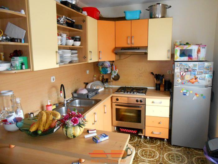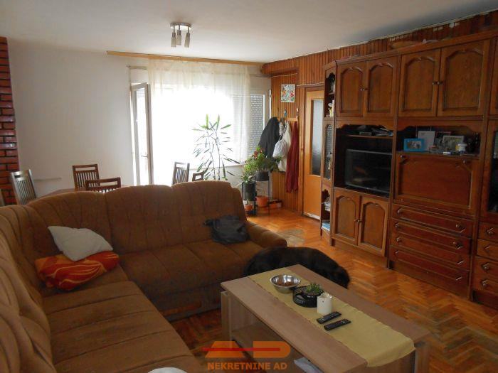 Stan u visokom prizemlju: predsoblje, boravak sa kuhinjom i blagovaonom, kupaona sa wc-om i 3 sobe.