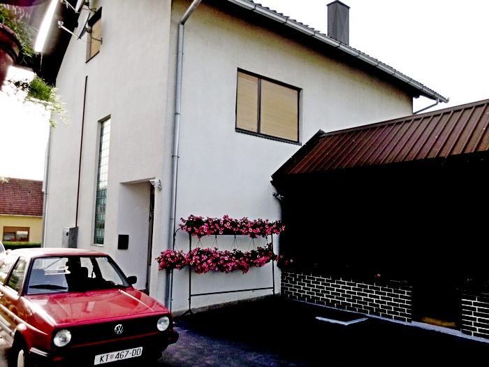 Ulaz na posjed je asfaltiran, pored je predivno ukrasno bilje, iza kuće je u ključu lj. kuhinja, garaža, ostavna prostorija, drvarnica, dio za životinje i vrt.