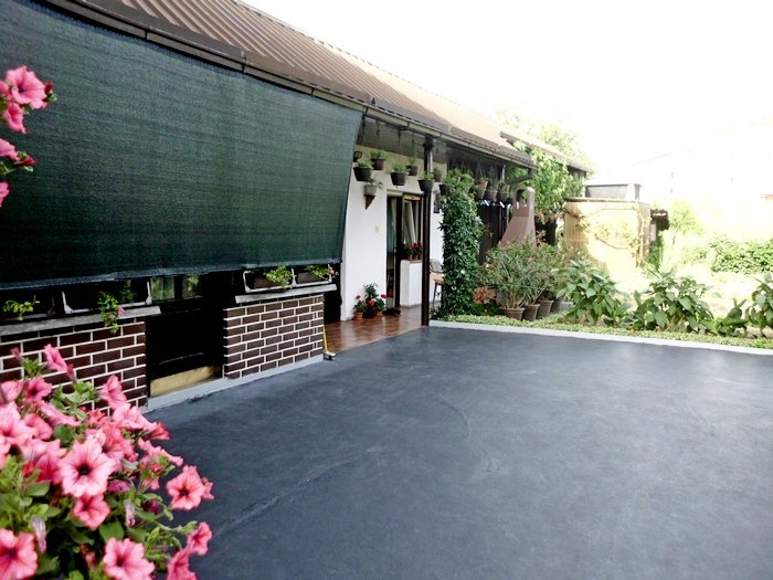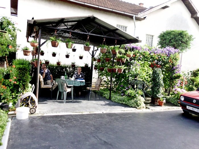 U dvorištu se nalaze 2 sjenice, jedna pored druge, od kojih je jedna natkrivena, a druga je pod brajdom, obje okružene lijepim cvijećem.