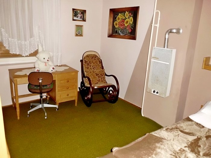 Grijanje je pećima na plin, ali je moguće grijati i pećima na drva.