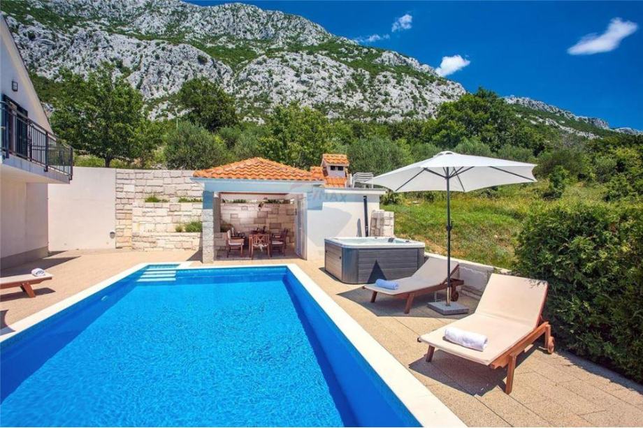 Omiš, Gata, Kuća 205m2+bazen+jaccuzi+sauna, prekrasan pogled na more (prodaja)