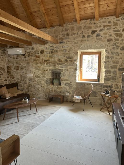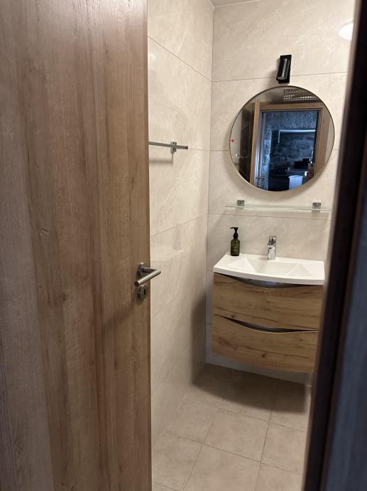 Iznajmljuje se potpuno opremljena kuća, s dvije spavaće sobe, pomoćnim ležajima i 3 kupaonice. Uz kuću su dva parkirna mjesta te dvorište s bazenom. Kuća je slobodna do 01.06.2026. Opremljena je perilicom za posuđe, klima uređajima, perilicom i sušilicom za odjeću, video nadzorom te svim drugim uređajima. Kuća je udaljena cca 30km od Splita, i 5 od Omiša.