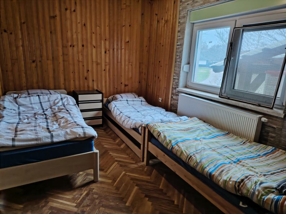 Kuća se sastoji od 3 spavače sobe, kuhinje, dnevnog boravka, hodnika i kupaonice. Od pomočnih prostorija ima podrum i spremište od 42m2.