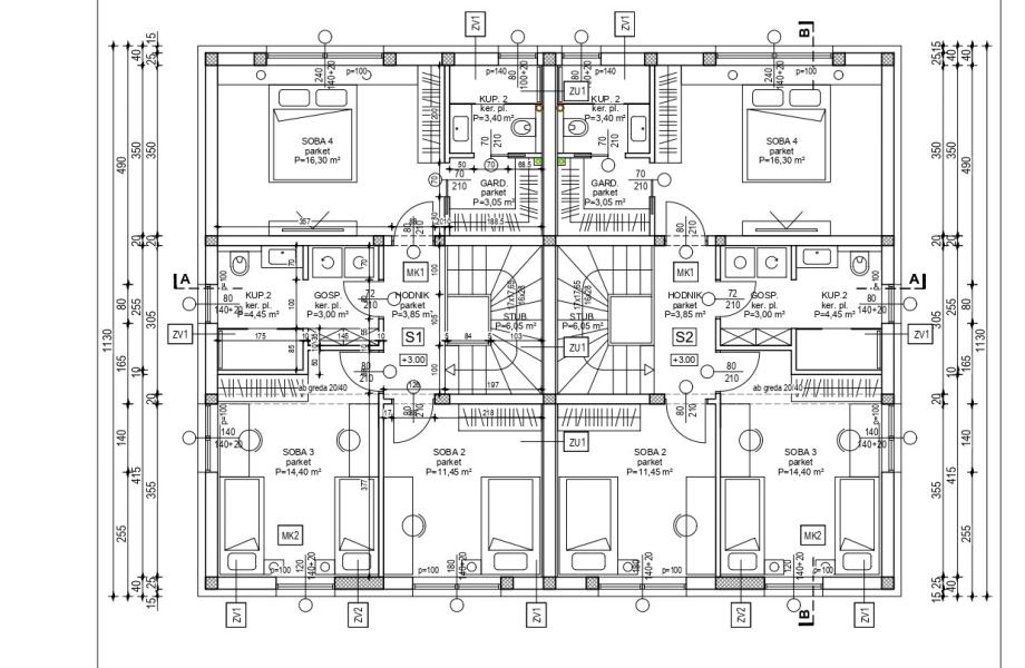 Stambena građevina koncipirana je kao dva odvojena stana, projektirana prema modernom arhitektonskom rješenju sa ravnim neprohodnim krovom, toplinske izolacije energetskog razreda A (grafitni stiropor kao izbor kod izolacije pasivnih i niskoenergetskih kuća) , međukatne konstrukcije od armiranobetonske ploče debljine 20cm i pvc stolarijom iznimne kvalitete.