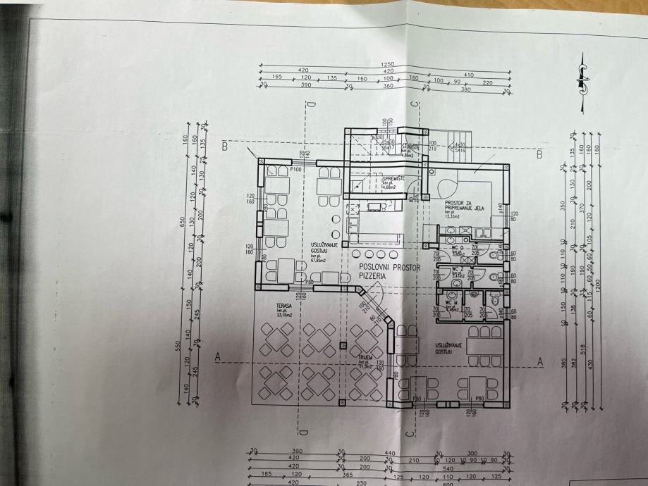 P.prostor se sastoji od zatvorenog dijela(prostor za usluzivanje gostiju,prostor za pripremu hrane,sanitarni cvorovi muski i zenski te za osoblje.i prirucno spremiste)te natkrivene i nenatkrivene terase.