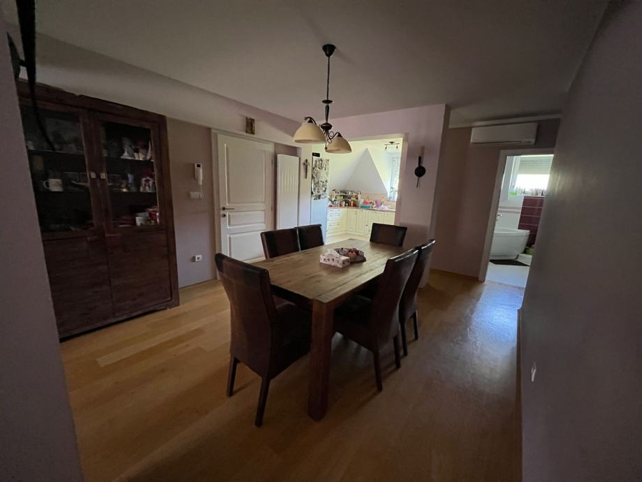 Potkrovlje-stubiste,blagavaonica sa kuhinjom i dnevnim boravkom,kupaonica sa wc-om i kadom,hodnik,radna soba,soba 1.,soba 2. i soba 3.