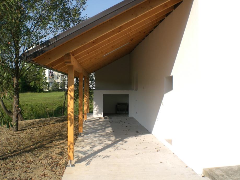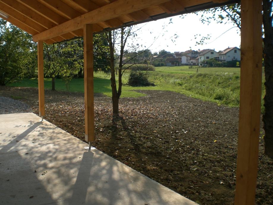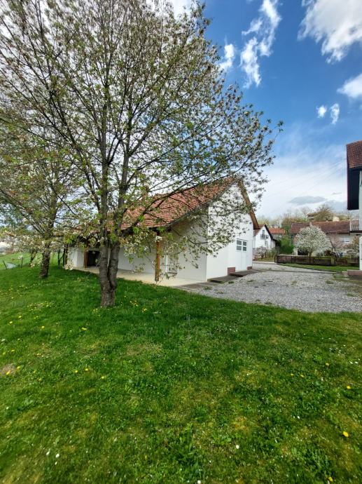 Gospodarska zgrada je kompletno modernizirana, moguce su razne upotrebe i postoje 4 ulaza. Moguce je koristiti kao stambeni prostor, ured, projektni ured ili slicno. U prizemlju se nalazi velika prostorija (45m²), kuhinja, zahod, ostava i veliki hodnik. Odostraga je natkriti parking za 2 velika ili 3 manja automobila, osvjeta, struja voda i odvod su vec uredjeni, znaci moze se koristiti kao terasa.