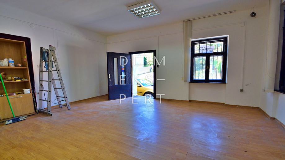 Prizemlje kuće sastoji se od dva manja poslovna prostora koji su zadnje korišteni kao uredi te stambenog dijela kuće. U stambenom dijelu nalaze se ulazni prostor, hodnik, kupaonica, kuhinja s blagovaonicom, prostrani dnevni boravak, dvije spavaće sobe i spremište.