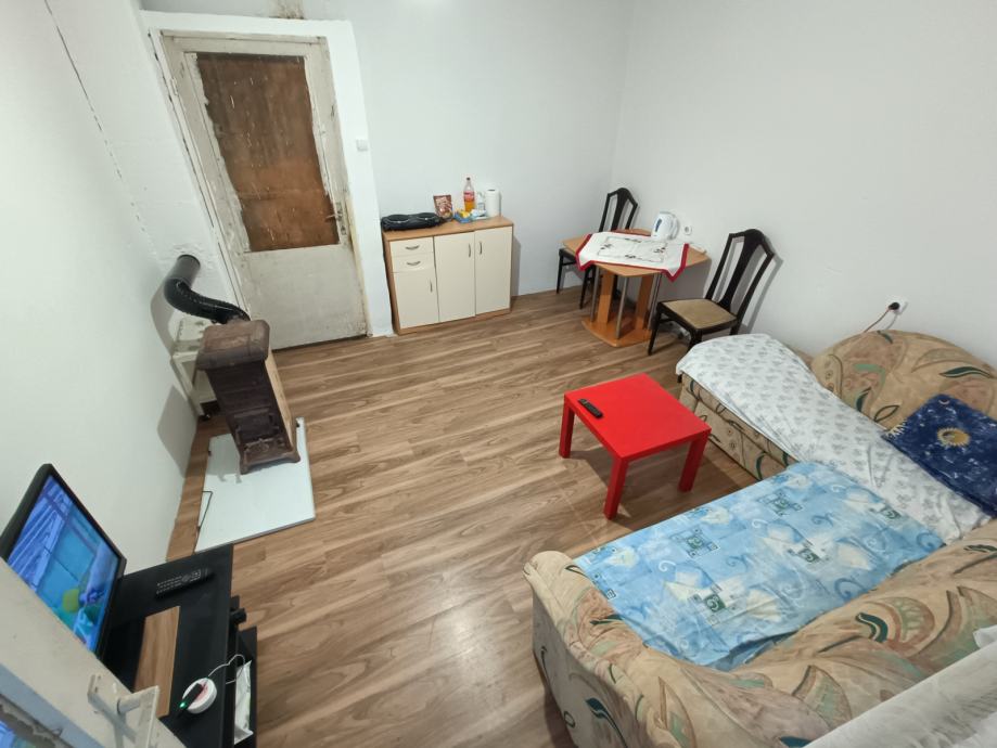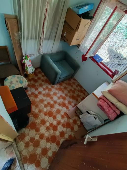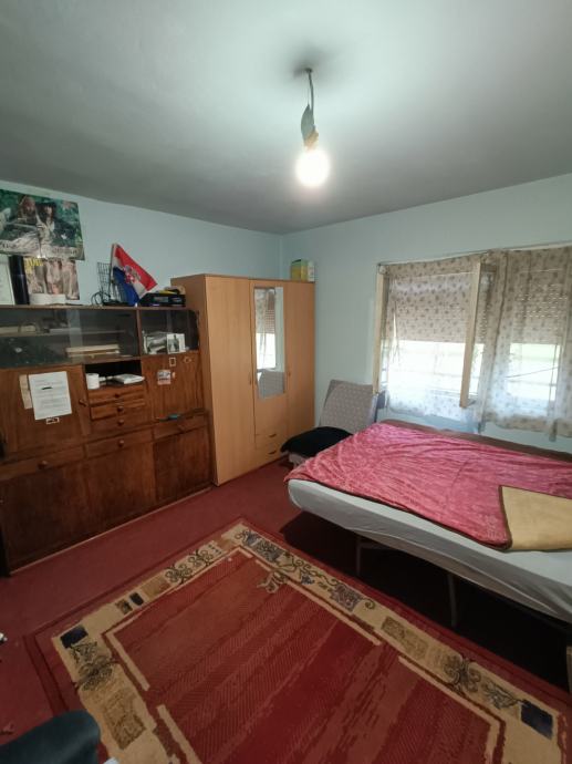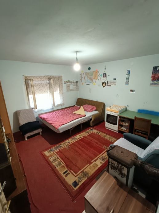 Na prodaju katnica ( cca 120 m2) sa garažom i drvarnicom sve na okućnici od 2 950 m2 plus prilazni put 367 m2. Sastoji se od prizemlja u kojem se nalaze dvije prostorije za kompletnu adaptaciju te kata kuće koji je spojen vanjskim stepenicama u kojem se nalazi hodnik, 2 sobe, dnevni boravak, kupaona i prostorija koja je trebala služiti kao kuhinja(nije uređena). Na kuću se nadovezuje garaža (na slici kuće sa plavim vratima prostorija).