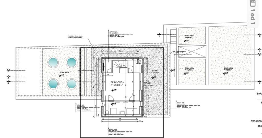 Cijeli sustav grijanja i hlađenja osigurava optimalnu temperaturu tijekom cijele godine. Solarni paneli pokrivaju toplu vodu, griju bazen što čini ovu
