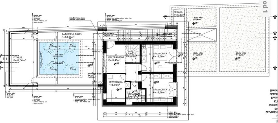 Podno grijanje izvedeno putem Toshiba dizalice topline a grijanje bazena je izvedeno putem električnog grijača i preko solarnih panela.
