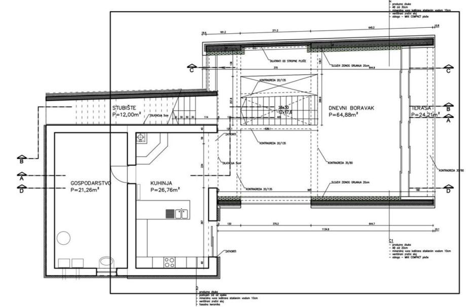 Kuća ima četiri etaže – suteren, prizemlje, međukat i kat.