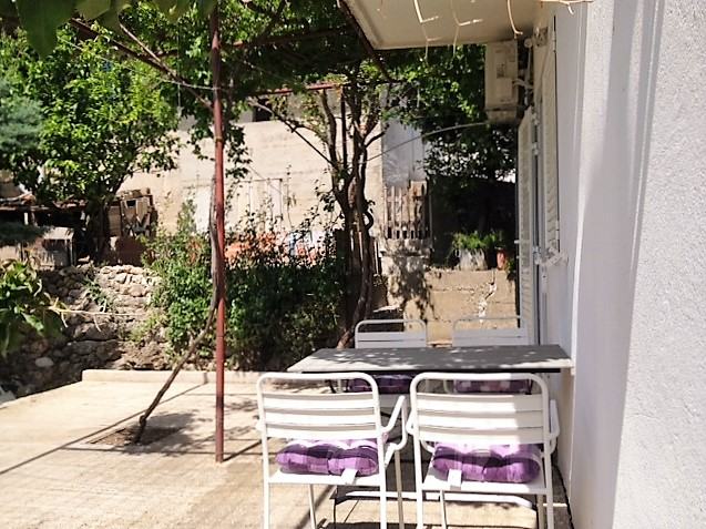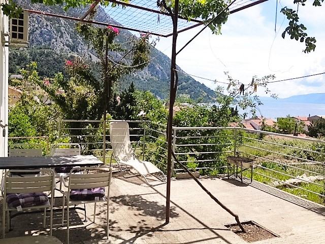 Samostojeća kuća u mirnom dijelu, katnica s lijepom okućnicom i pogledom na more, 3 minute hoda do plaže.
